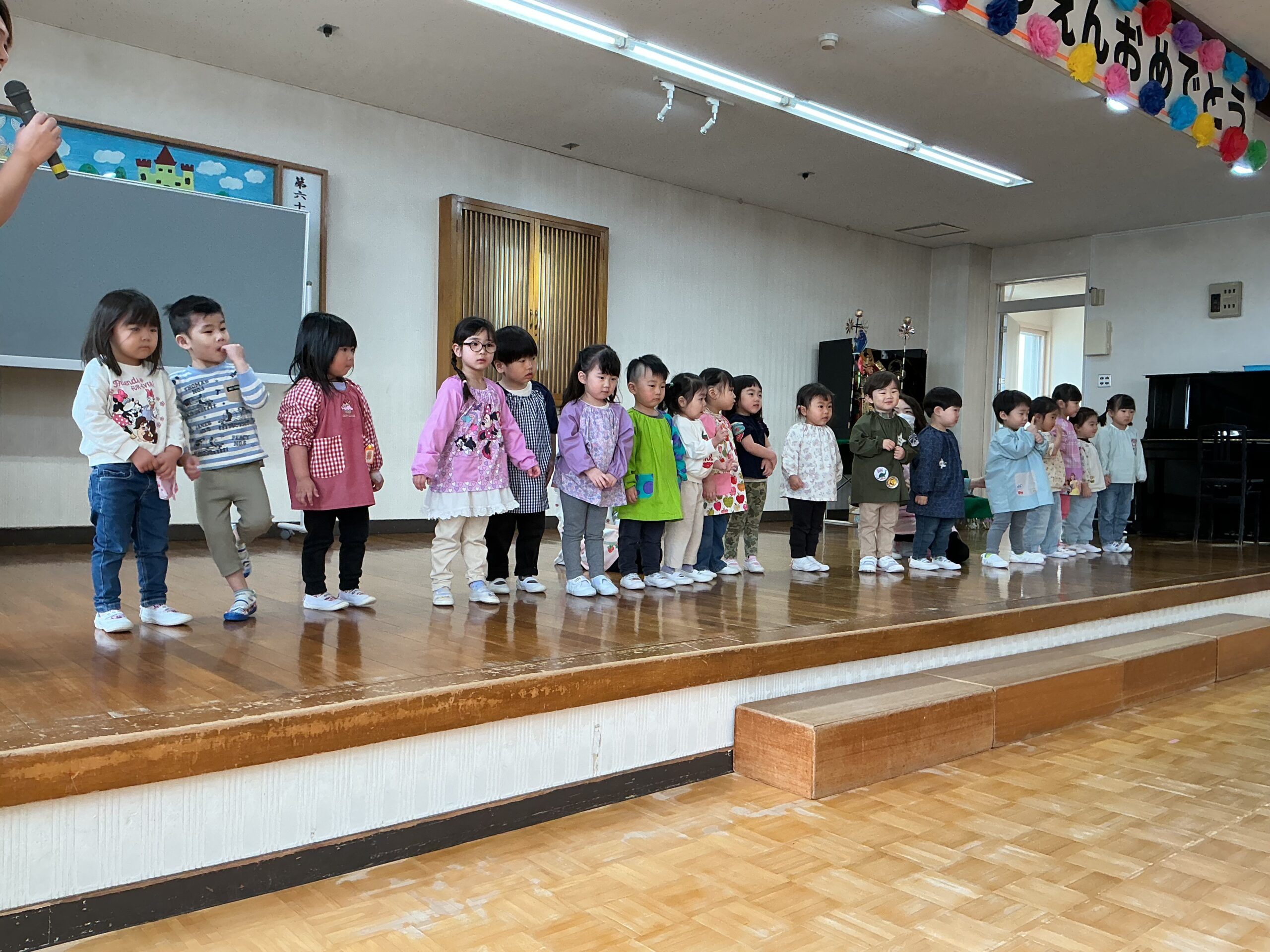 おもちゃのお片付けをした後は、「いっぽんばし」のわらべ歌と、「おおきくなった」の絵本を読んで
