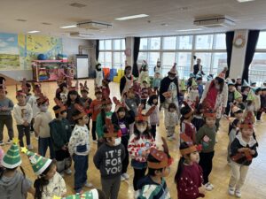 3月生まれのおともだちのお誕生日会を行い、大型絵本のはらぺこあおむしを見て帰りました。