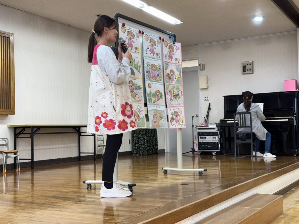 朝の体操と朝のお集まりをしてからめぐみ先生のお話を聞きました!