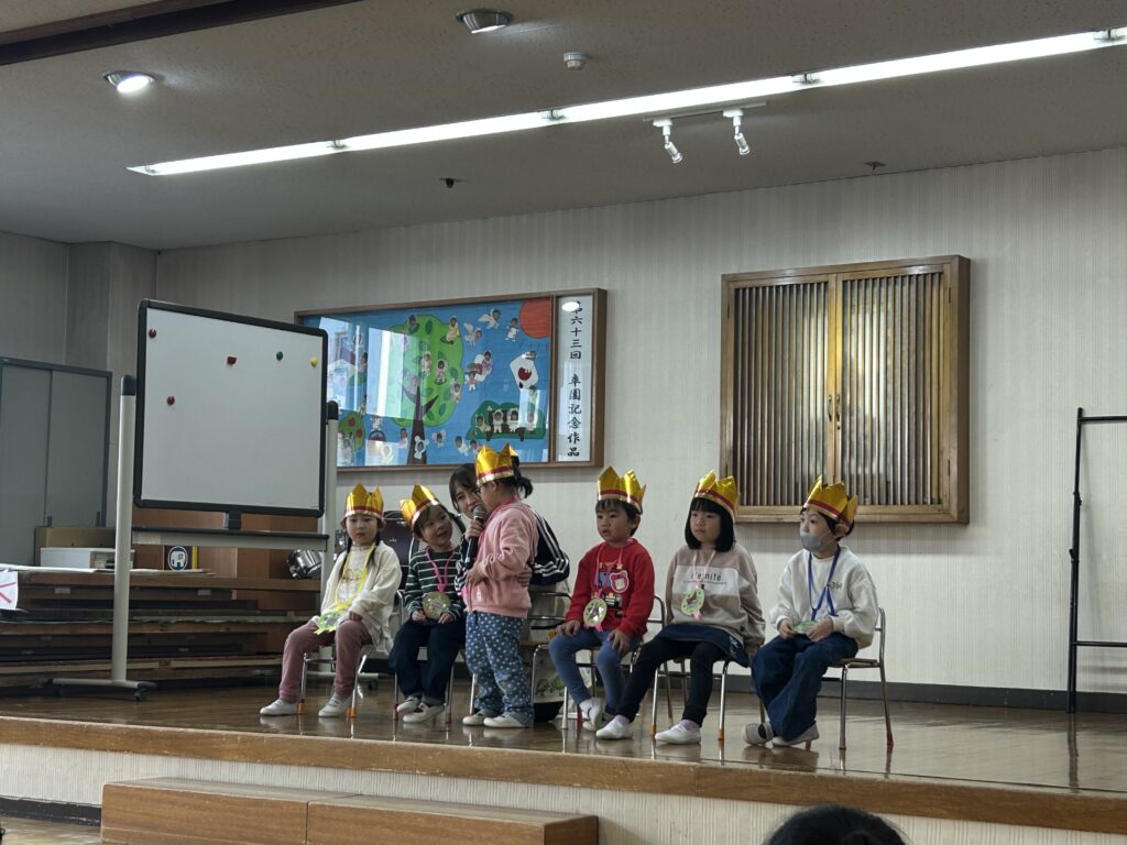 お誕生児さんにクラス・お名前・何歳になったかをインタビューし、