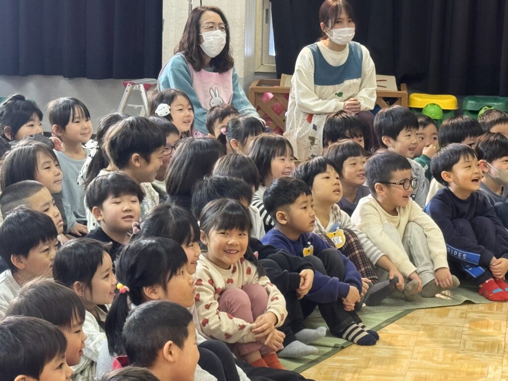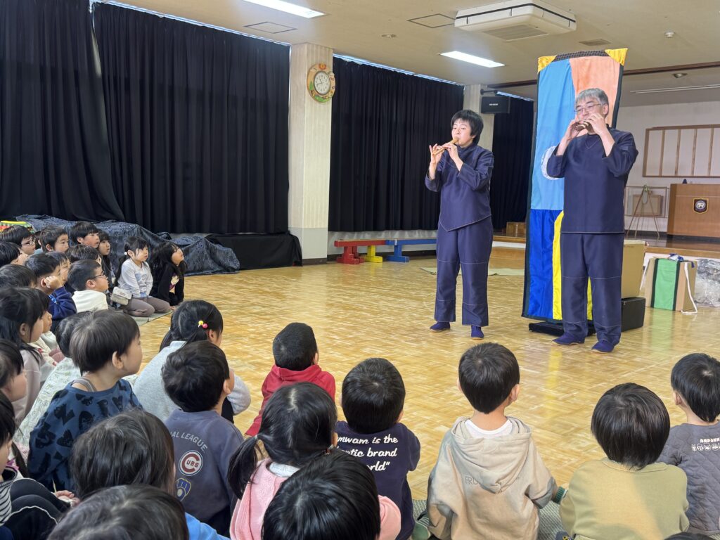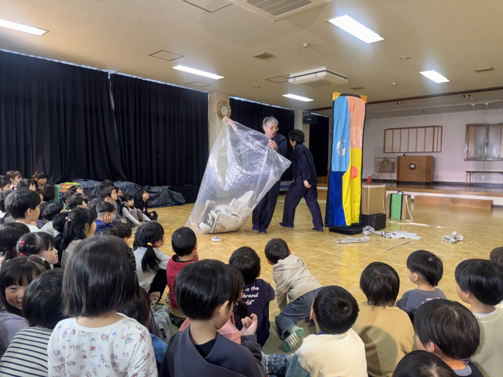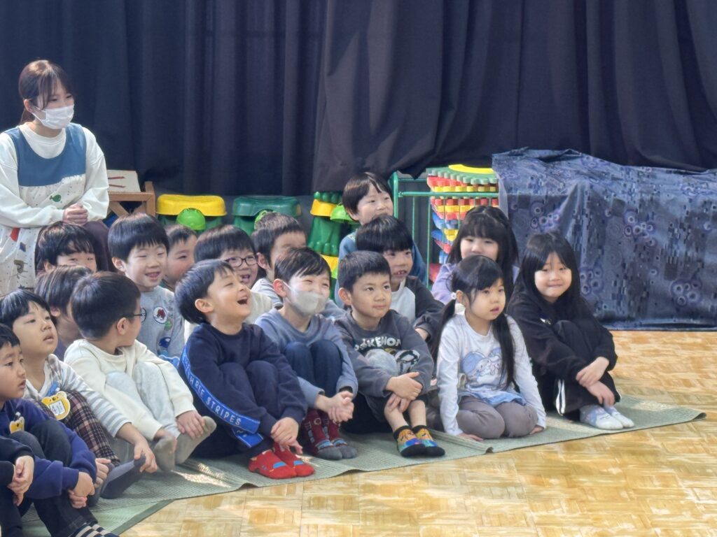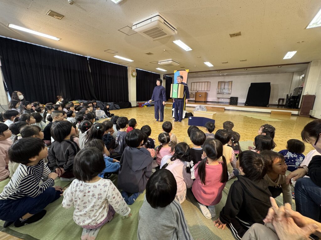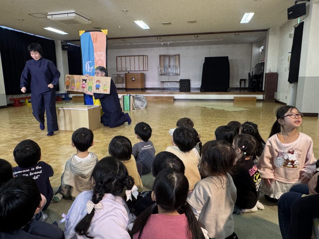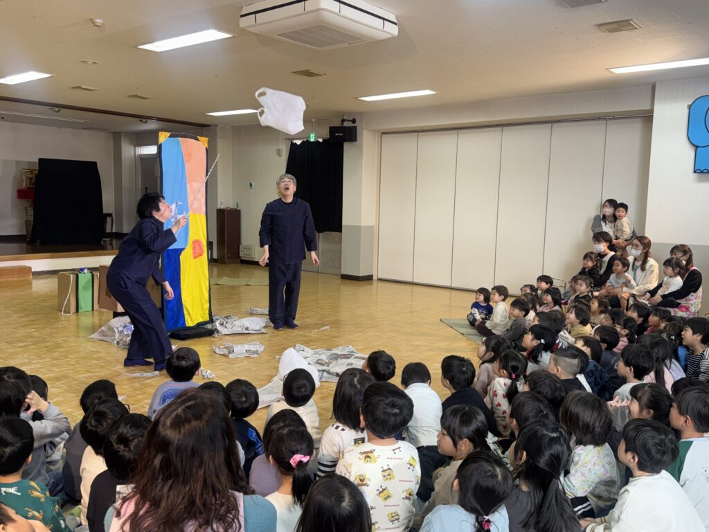 幼稚園に劇団風の子さんが来てくださって『山を越え 川を越え』という演目をしていただきました!