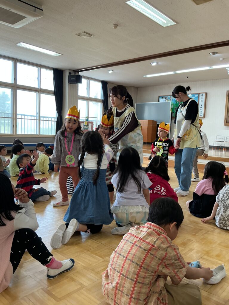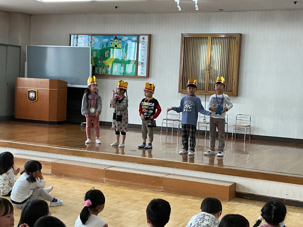 入場後は、クラスとお名前、何歳になったかを発表してもらい、年中さんには好きな色、年長さんには好きな色と好きな遊びも教えてもらいましたよ!